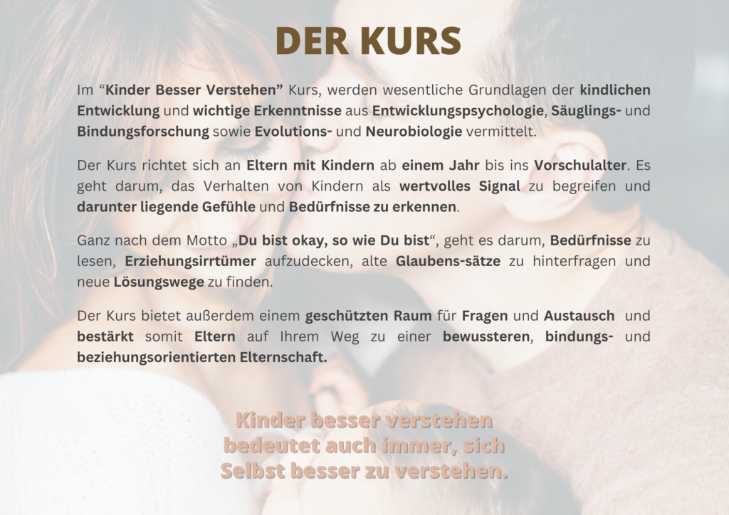 Der Kurs (oder auch persönliche Beratungen) ist eine absolute Bereicherung für alle Eltern und kann ich uneingeschränkt empfehlen!